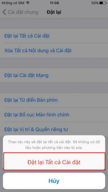 Nếu thiết bị của bạn đã được đặt Mật mã (Passcode) thì khi chọn vào Đặt lại Tất cả Cài đặt, hệ thống sẽ yêu cầu bạn nhập mật mã. Hãy nhập mật mã vào rồi chọn tiếp Đặt lại Tất cả Cài đặt để xác thực yêu cầu.
