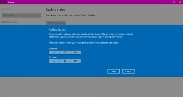 Tính năng Active Hours thông báo cho Windows 10 biết vào khung giờ đó bạn đang làm việc trên máy, vì vậy hệ thống sẽ tự động “né” khung giờ đó ra. Windows 10 sẽ không tự động update trong khoảng thời gian bạn chọn.