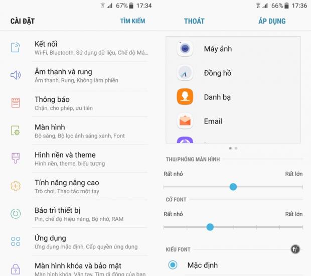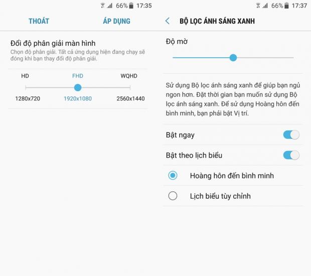 Mình đặc biệt thích sự thay đổi trong giao diện mới của phần cài đặt. Icon được thiết kế trẻ trung, sinh động và nhiều màu sắc hơn, khoảng cách giữa các mục được phân chia hợp lý hơn, giúp người dùng không cảm thấy quá bối rối khi tìm kiếm cài đặt. Đặc biệt hơn, giờ đây bạn còn có thể tuỳ chỉnh độ phân giải màn hình, tuỳ chỉnh độ phân giải hiển thị cũng như Samsung đã tích hợp thêm bộ lọc ánh sáng xanh giúp người dùng đỡ mỏi mắt hơn khi sử dụng về đêm.
