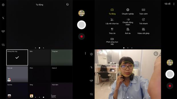 Giao diện camera cũng chính là một trong những điểm thay đổi nổi bật nhất trên Android 7.0. Icon chụp ảnh đã được thiết kế lại tròn trịa và đẹp hơn, các thao tác vuốt được khai thác tối đa. Cụ thể, từ giao diện chính, bạn có thể vuốt từ trái qua để lựa chọn các chế độ chụp, vuốt trừ phải qua để chọn các bộ lọc và vuốt từ dưới lên hoặc từ trên xuống để chuyển đổi giữa camera trước và camera sau.