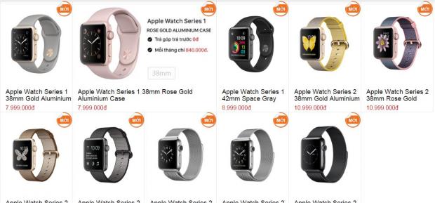 Hiện tại có 3 phiên bản của Watch Series 1, 2 phiên bản 38 mm gồm màu vàng gold và màu vàng hồng có giá 7.99 triệu đồng trong khi bản 42 mm màu xám đen có giá 8.99 triệu đồng.