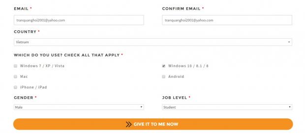Bước 2: Kích vào Download > Điền đầy đủ thông tin theo yêu cầu > Nhấn vào Give it to me now