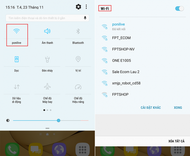 - Mở nhanh các cài đặt ngay trên giao diện Quicksetting