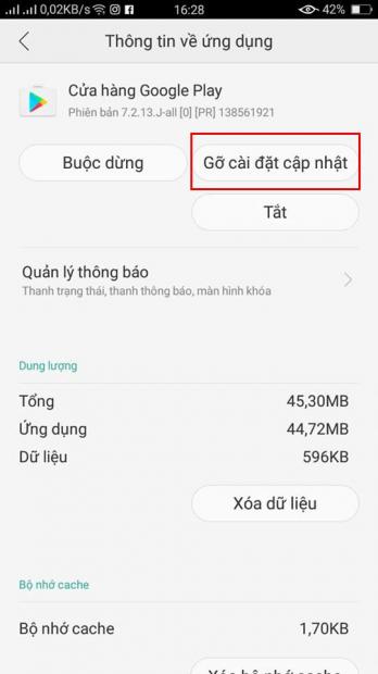 Gỡ update của Play Store và cài lại: Gỡ cài đặt và cài lại các bản update của Play Store sẽ đưa ứng dụng trở về trạng thái ban đầu, đối với cách này chúng ta chỉ gỡ bỏ update của Play Store nhằm buộc Store update trở lại lên bản mới nhất và loại bỏ những lỗi có thể phát sinh ở giai đoạn sử dụng trước đây.