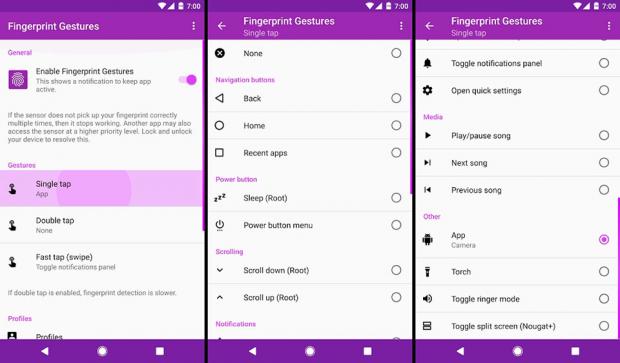 Ứng dụng này sẽ kết hợp với máy quét vân tay trên điện thoại của bạn để thiết lập các chức năng khác nhau. Ví dụ một chạm sẽ đưa bạn đến màn hình chủ, một lần vuốt có thể kéo xuống thông báo, 2 lần chạm sẽ bật đèn pin... Sẽ có rất nhiều lựa chọn để bạn tinh chỉnh.