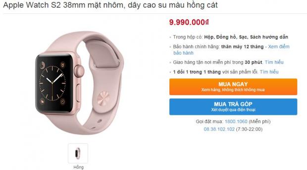 Tại Thế giới di động, bạn có rất nhiều lựa chọn đối với mẫu Apple Watch S2 này. Ngoài lựa chọn về màu sắc, chất liệu dây đeo thì bạn cũng có thể lựa chọn phiên bản 38 mm hoặc 42 mm. Bản 38 mm có giá bắt đầu từ 9.99 triệu đồng trong khi bản 42 mm có giá từ 10.49 triệu đồng.