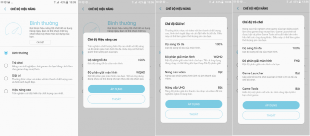 Chế độ “trò chơi”: giúp nâng cao các trải nghiệm chơi game bằng cách bật Game Launcher/ Game Tool để tối ưu chế độ chơi game và khả năng hỗ trợ cần thiết. Độ sáng được chỉnh lên tối đa và phân giải màn hình được đặt ở mức FullHD