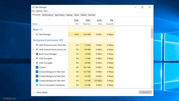 Tuy nhiên thì các bạn có thể theo dõi mức độ sử dụng tài nguyên của ứng dụng để dễ dàng xác định app nào nặng, app nào nhẹ bằng cách nhấn Control + Alt + Delete > Task Manager > More detail > tab Processes. Tại đây, bạn có thể xem mức độ sử dụng CPU và RAM của từng phần mềm một.