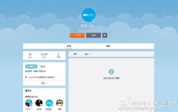 Trang Weibo chính thức của Meizu về máy tính bảng của đã được mở