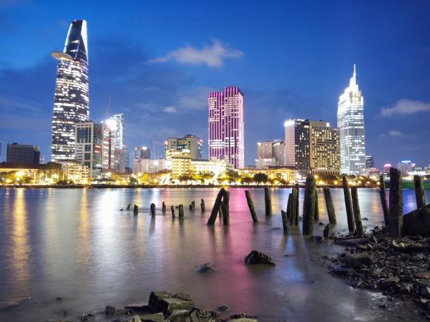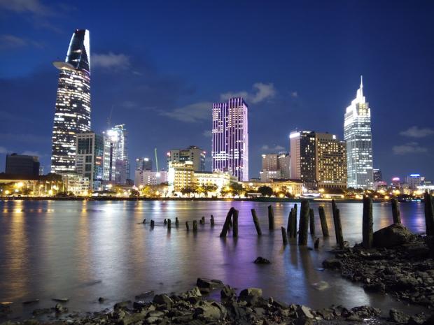 10 giây cho bức ảnh đầu tiên, mặt nước khá mịn tuy nhiên ảnh của mình đã bị cháy sáng khá nặng ở những phần đèn từ các tòa nhà Vietcombank Tower, Majestic Hotel. Để ý chút các bạn có thể thấy mây ở trên trời đang trôi tạo thành vệt đấy (ISO 100 - Thời gian phơi 10 giây - WB Auto - Lấy nét vô cực)