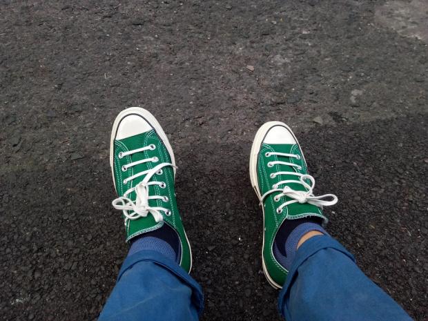 Màu xanh lá cây đậm được tái tạo chính xác, phần vớ và quần với 2 màu xanh khác nhau nhưng vẫn được tách bạch theo vùng màu rõ ràng do cân bằng trắng tốt (Chế độ chụp Auto).