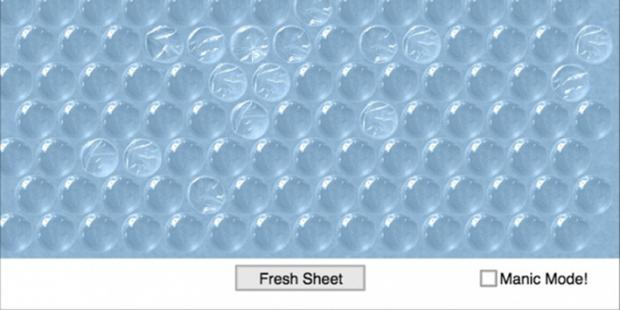 Bạn còn nhớ những miếng bong bóng bọc hàng hóa dễ vỡ mà chúng ta mê mẩn ngồi bóp vỡ thời còn bé chứ? Rất khó lí giải tại sao con người lại có cảm giác vui thích đến vậy khi được bóp vỡ những hạt bong bóng bé li ti bằng nilon. Tuy nhiên, trang web này đánh đúng vào sở thích kì lạ này của chúng ta và tạo ra hẳn một giao diện chuyên để những người đang gặp strees ngồi kích chuột phá bong bóng.