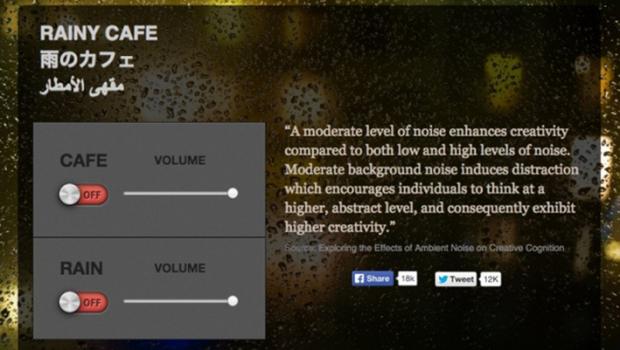 Tạm dừng việc xả stress bằng những cách tương đối hằn học lại. Tại sao bạn không tìm một chốn yên tĩnh, lắng nghe một bản nhạc dịu dàng và để cho tâm hồn tĩnh lặng lại? Tin rằng bạn sẽ tìm thấy những giây phút bình yên và thả lỏng được tâm trí mình. Rainy Cafe chính là trang web bạn cần trong lúc này. Giao diện mờ nước như đang ngồi nhìn ra cửa sổ chiều mưa sẽ kết hợp với âm thanh tí tách của mưa rơi và tiếng ồn ào nhẹ của một quán cà phê sẽ giúp bạn dễ dàng đi vào giấc ngủ hơn.