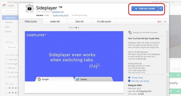 Để thực hiện việc này, bạn chỉ cần tải về một tiện ích từ kho của hàng Chrome trực tuyến mang tên SidePlayer (Tải về Sideplayer.)