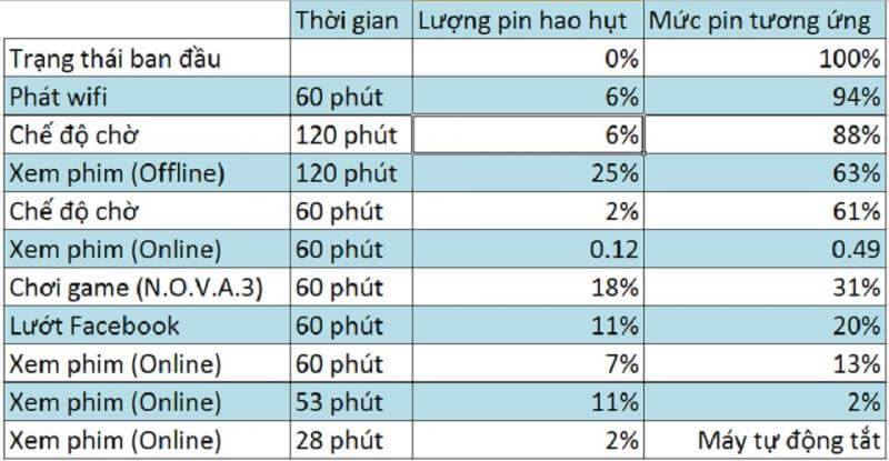 Khi Meizu U20 báo đầy 100%, pin rút sạc và bắt đầu bật 3G để thực hiện việc phát wifi cho laptop cũng như máy tính bảng của mình để sử dụng. Thời gian phát wifi là 60 phút, trong 1 tiếng đồng hồ này máy tụt 6% chỉ còn 94% dung lượng. Sau đó, mình chủ động tắt chức năng phát wifi và để Meizu U20 ở chế độ chờ, tức là màn hình đã tắt nhưng vẫn còn kết nối 3G. Sau 120 phút ở chế độ chờ, Meizu U20 mất 6% pin, lúc này còn 88% pin, trung bình thì 60 phút Meizu U20 tiêu hao 3% pin ở chế độ chờ. Dường như việc nhận quá nhiều thông báo từ Facebook và Messenger đã khiến cho Meizu U20 tiêu hao nhiều pin hơn trong 120 phút tắt màn hình.