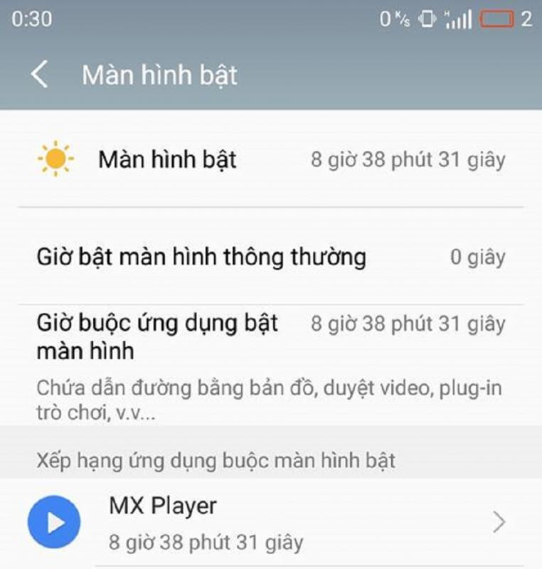 Thời gian sáng màn hình khi Meizu U20 còn 2% pin