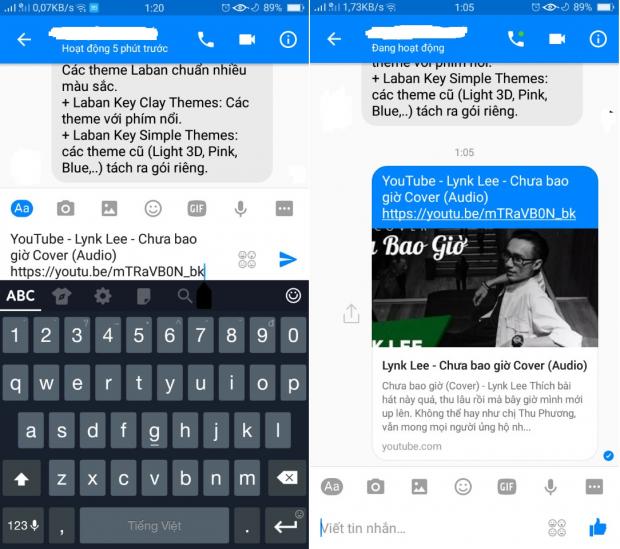 Sau đó, sẽ xuất hiện ra tên tiêu đề cùng với đường dẫn video, lúc này bạn đã có thể chia sẻ video đến người mình muốn bằng cách nhấn gửi như bình thường, người nhận có thể nhấn vào đường dẫn đó để mở ra video mà bạn muốn chia sẻ với họ.