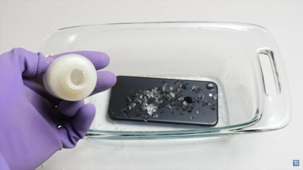 Như bạn đã thấy, dù bị ngâm trong Acid Fluoroantimonic suốt 12 tiếng nhưng mặt lưng chỉ bị ăn mòn phần màu bị sơn chứ không ăn mòn được tiếp lớp vỏ kim loại. Sau đó, TechRax tiếp tục đổ Acid Sulfuric lên màn hình và ngập luôn cả điện thoại. Nhưng cuối cùng, iPhone 7 vẫn sống sót tốt, cổng sạc Lightning vẫn xài được nhưng ngoại hình lại hơi xấu 1 chút thôi. Có thể thấy Apple đã tạo ra 1 chiếc iPhone 7 có độ bền khá tốt đấy chứ nhỉ.