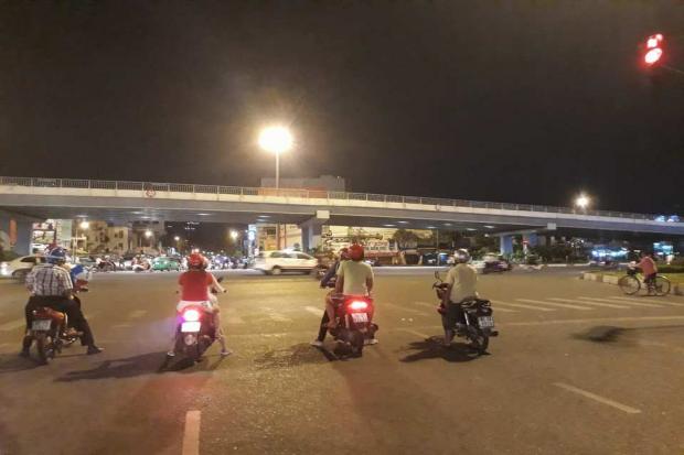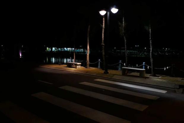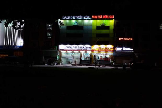 Đây là một trong những điều kiện thách thức lớn nhất đối với các cameraphone. Samsung Galaxy J5 Prime được trang bị khẩu độ lớn là f/1.9 nên khả năng thu sáng trong điều kiện này là khá tốt. Chi tiết giữ lại được có thể đọc được biển số chiếc xe máy phía trước. Tuy nhiên do giữ lại nhiều chi tiết nên ảnh lại bị noise nhiều. Cân bằng trắng máy đã xử lý rất tối ưu không để bị màu vàng ám nhiều lên chi tiết như những sản phẩm khác của Samsung.