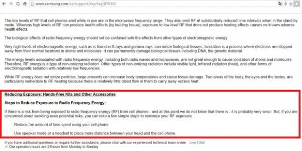 Lời khuyên giúp người dùng hạn chế tiếp xúc RF trên website của Samsung