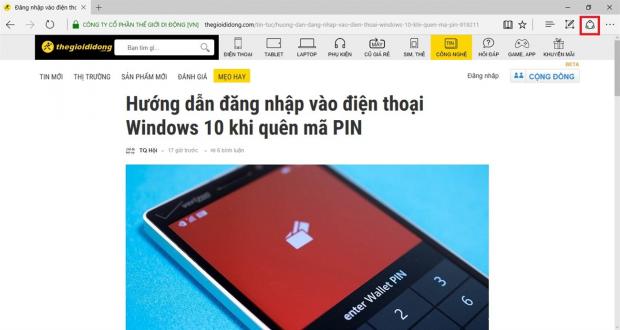 Bước 1: Bạn mở bất kỳ 1 trang web bằng Microsoft Edge (cũng có thể chọn 1 ứng dụng để test thử tính năng này). Ở đây mình vào 'Mẹo hay' của TGDĐ thấy 1 mẹo khá hấp dẫn nên muốn share cho bạn bè.