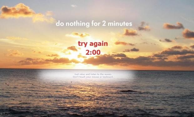 Dù công việc bận rộn đến thế nào, cũng không một ai có quyền ngăn cản bạn thư giản trong vòng 2 phút. Donotthingfor2minutes sẽ giúp bạn tận hưởng 2 phút của bạn một cách tuyệt vời nhất. Những tiếng sóng biển vỗ vào bờ, tiếng chim hải âu, bạn sẽ có cảm giác như mình đang ở thiên đường vậy.