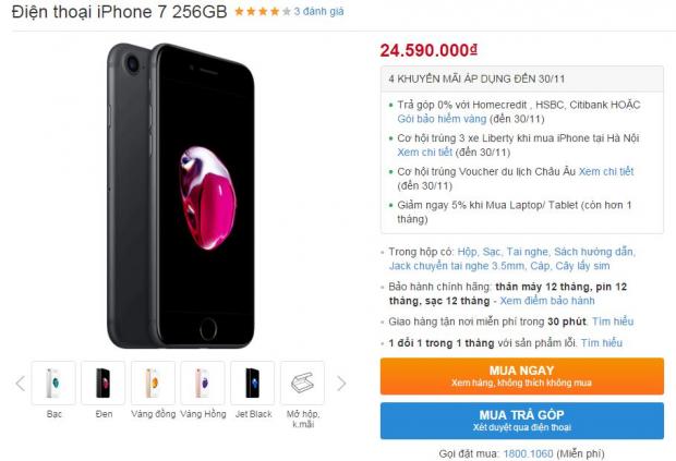 Theo đó, iPhone 7 Jet Black 256 GB đã lên kệ Thế giới di động với giá bán 24.59 triệu đồng. Đây được xem là phiên bản cao cấp nhất, hấp dẫn nhất của iPhone 7 bởi phiên bản đen bóng hiện rất được ưa chuộng trên thị trường, máy có vẻ ngoài sang trọng, hấp dẫn và mới lạ.