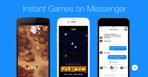 Facebook vừa cho ra mắt bộ game mới trên Facebook Messenger có tên là Instant Games, gồm 17 trò chơi trong đó có: Pac-Man, Space Invaders và Words With Friends Frenzy.