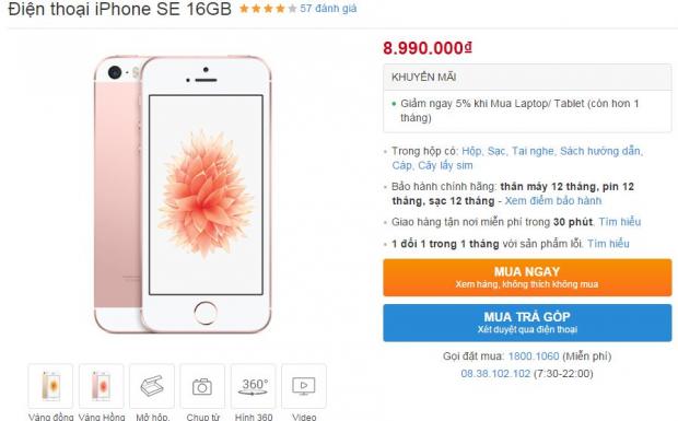 Theo đó iPhone SE 16 GB đã chính thức giảm giá còn 8.99 triệu đồng, bản 64 GB giảm giá còn 11.99 triệu đồng, như vậy là cả 2 đã được điều chỉnh hạ 2 triệu đồng.