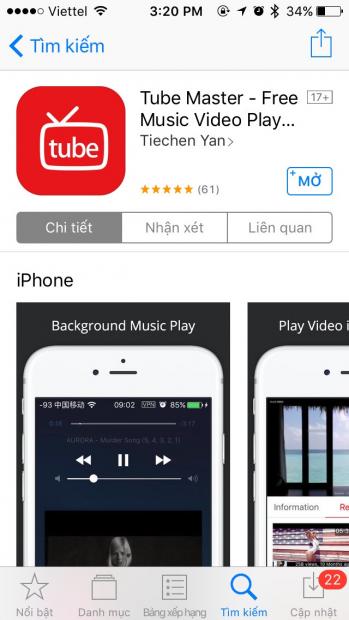 Sau khi tải về, mở Tube Master lên, tại giao diện chính của ứng dụng hãy tìm video mà bạn muốn xem hoặc nghe. Vậy là bạn đã có thể tự do tắt màn hình hay làm mọi việc mà bạn thích trên chiếc iPhone của mình mà không lo quá trình nghe nhạc bị gián đoạn rồi.