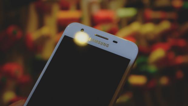 Phía trên là logo Samsung cùng cảm biến và camera selfie, vì kích thước nhỏ nên vị trí sắp xếp khá sát, tuy nhiên vẫn đem lại sự tinh tế, không quá dày đặc, chật chội.