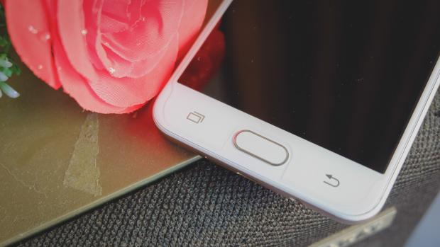 Phím Home được tích hợp sẵn bảo mật vân tay 1 chạm khá nhạy như trên J7 Prime, không cần thao tác bật màn hình lên, bạn vẫn có thể mở khoá máy. Độ hoàn thiện của phím cứng này khá tốt, sang trọng, lực nhấn đủ, không cứng cũng không quá mềm.