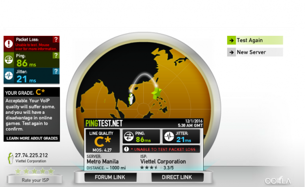Để kiểm tra Ping, vào đây. Nói chung, kết quả càng thấp thì càng tốt.