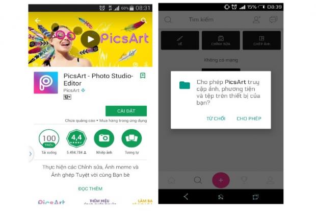 Bạn có thể dể dàng tìm thấy và tải về PicsArt trong store CH Play. Sau khi tải về bạn tiến hành chạy ứng dụng. Ứng dụng này đòi hỏi một số quyền ở chiếc Smartphone của bạn như là truy cập bộ sưu tập ảnh, tập tin…