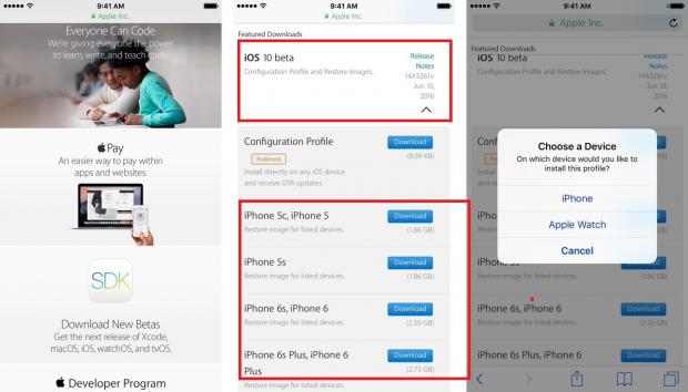 Bước 4: Di chuyển đến mục iOS 10 Beta > Nhấn vào mũi tên mở rộng > Tải về.