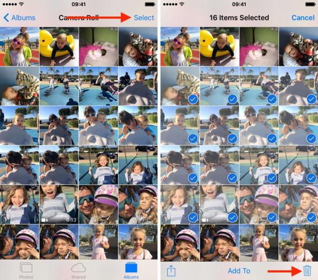 Với những bức ảnh, video đã từ lâu hoặc đã lưu trữ trên đám mây thì bạn nên xóa đi để tiết kiệm bộ nhớ. Để thực hiện điều này cũng hết sức đơn giản, bạn chỉ cần vào album bất kỳ, nhấn chọn ảnh và nhấn vào biểu tượng thùng rác, nhấn OK. Tiếp đến vào Albums/ Recently Deleted/ Select/ Delete All để xóa tất cả những gì vừa xóa ở trên.