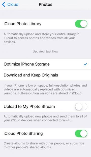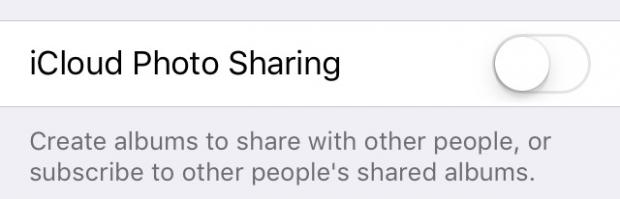 Ứng dụng này cho phép người dùng chia sẻ những hình ảnh và video và nhận Album của người khác. Những Album này sẽ tự động chuyển đến điện thoại của bạn và chiếm một bộ nhớ không nhỏ. Vì vậy, hãy tắt tính năng này đi bằng cách truy cập vào Settings/ iCloud/ Photo/ Tắt tính năng này.