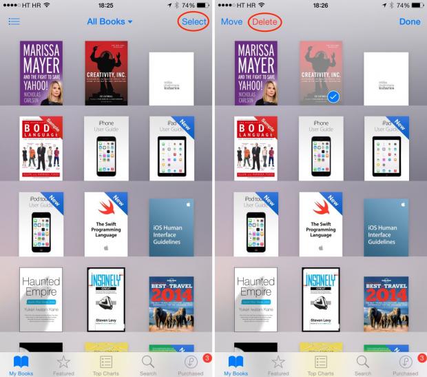 Đây cũng là một cách để giải phóng bộ nhớ nhưng nó không được hữu dụng như những cách trên. Những tài liệu điện tử được lưu trong iBooks có thể được đi kèm với các file audio và video lên đến vài GB, do vậy nếu cảm thấy không cần thiết thì bạn hãy làm theo các bước như : Mở iBooks, chọn Edit, chọn một số cuốn rồi Delete, Ok.