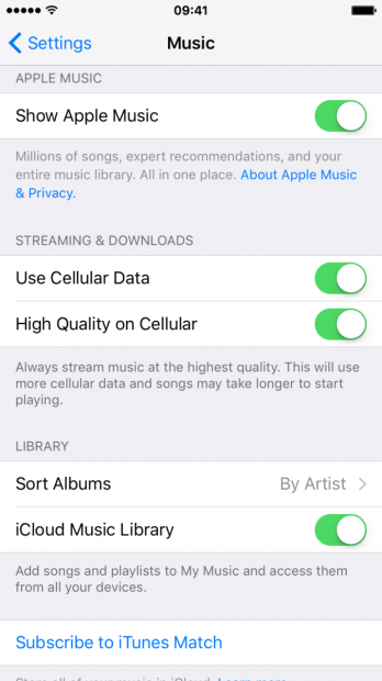 Nếu không thích Apple Music thì bạn có thể sử dụng Zing MP3 hoặc NCT. Tuy nhiên, với những người thích dùng tính năng này thì có thể làm theo cách sau để tiết kiệm bộ nhớ nhé. Vào Settings/ Music/ Apple Music/ Bật iCloud Music Library. Đây là ứng dụng giúp bạn quản lý tài nguyên nhạc cực tốt, giúp tối ưu dung lượng bộ nhớ, ngoài ra có thể đánh dấu cả những bài hát yêu thích để nghe nhạc Offline.