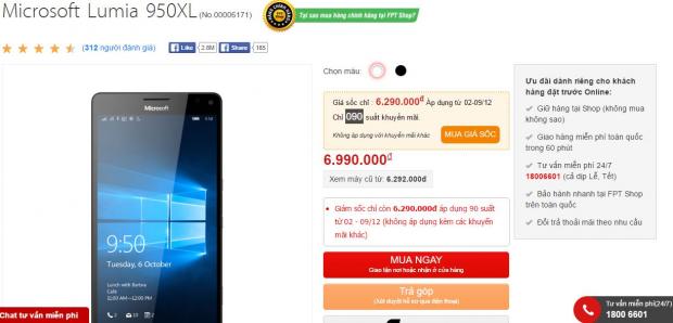 <p>> Asus ZenFone 3 thiết kế nhôm kính, RAM 4GB, camera 8/16 MP giảm giá cực sốcCụ thể, mẫu phablet Lumia 950 XL đã được giảm giá từ 6.99 triệu đồng xuống còn 6.29 triệu, giảm 700 ngàn đồng. Mức giá này là cực kỳ hấp dẫn đối với một sản phẩm cấu hình mạnh mẽ, hệ điều hành mượt mà cùng nhiều tính năng cao cấp khác. Lưu ý với các bạn là chương trình giảm giá này chỉ có 90 suất khuyến mãi và áp dụng từ 2 – 9/12 mà thôi.