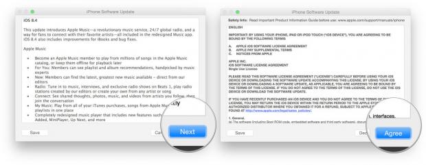 Công việc tiếp theo chỉ là chọn Next và Agree để quá trình hạ cấp được bắt đầu. Khi thiết bị đã hạ cấp thành công, bạn chỉ cần đồng bộ toàn bộ dữ liệu đã từng sao lưu, để khôi phục lại dữ liệu như lúc chưa hạ cấp.