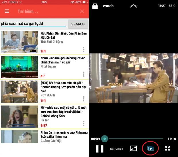 Sau khi tải về bạn mở ứng dụng lên và tìm video bạn muốn xem truy cập vào video đó bạn có thể tùy chọn được chất lượng hình ảnh, thu phóng video, khóa màn hình và chức năng chính cuối cùng là tạo video dạng cửa sổ bằng cách chọn vào biểu tượng mà mình đã khoanh tròn bên dưới.