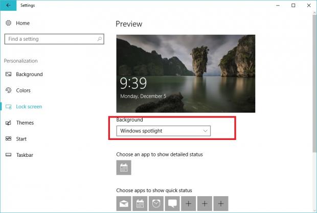 - Nhấn tổ hợp phím Windows + I > Chọn Personalization Lock Screen > Tại mục Background chọn Windows Spotlight.