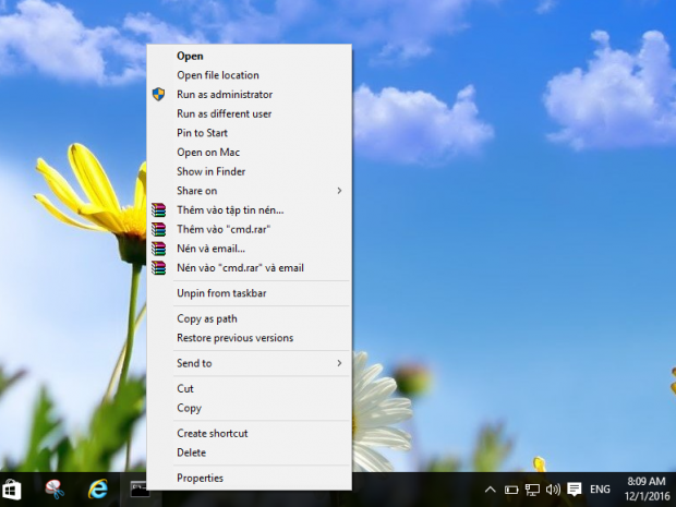 Một mẹo nữa là bạn hãy sử dụng tổ hợp phím Ctrl + Shift + chuột trái lên icon ứng dụng trên Taskbar để mở quyền quản trị viên (Administrator). Với tổ hợp phím này, bạn có thể dùng để mở cửa sổ dòng lệnh Command Prompt với quyền Administrator
