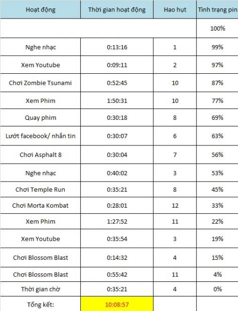 Nhìn từ bảng thống kê trên, có thể thấy thời lượng pin trên Samsung Galaxy J5 Prime là cực kỳ ấn tượng với hơn 10 tiếng sử dụng hỗn hợp nhiều ứng dụng dù chỉ được trang bị viên pin là 2400mAh. Lợi thế của J5 Prime là chỉ gánh một màn hình HD và tấm nền PLS nên khả năng tối ưu pin là rất tốt. Pin thật sự hao hụt nhiều là lúc khi chơi các tựa game nặng, tuy nhiên khoảng 15% trở xuống thì lượng pin có phần hao hụt ít hơn.