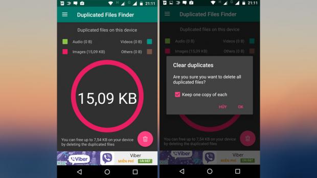 Sau khi cài đặt thành công, ứng dụng sẽ tự động tìm những file bị trùng lặp như video, âm thanh, hình ảnh… việc của bạn là chọn file và xóa hết hoặc xóa theo lựa chọn.