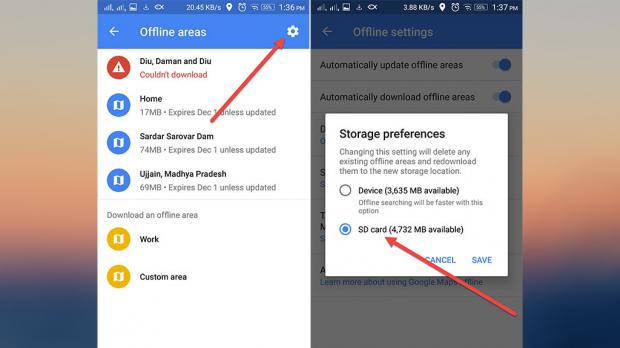 Đây là một tính năng khá tuyệt vời của Google Maps. Tuy nhiên, những bản đồ mà người dùng tải về lại tốn tương đối nhiều không gian lưu trữ. Do đó, nếu không cần thiết thì hãy loại bỏ chúng hoặc chuyển lưu trữ sang thẻ SD.