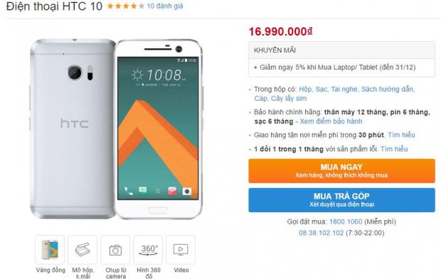 Tại thị trường Việt Nam, HTC 10 là mẫu flagship của HTC có mức giá được giữ lâu nhất, thậm chí các khuyến mãi đi kèm cũng rất ít. Tuy nhiên mới đây tại thị trường Mỹ, HTC 10 đã có những động thái giảm giá thì mình tin rằng tại thị trường nước ta, nó cũng sẽ giảm trong thời gian tới.