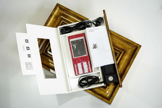 4 góc máy là các đai vàng nổi bật trên bộ khung màu đỏ. Cổng sạc, giắc cắm tai nghe được bố trí ở cạnh trên theo cách truyền thống.