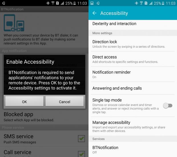 Điều đầu tiên, để khai thác tối đa công dụng của Bluetooth Partner trên Philips E170, bạn nên Tải phần mềm BTNoitification về cài đặt trên chiếc smartphone Android mà bạn sẽ dùng để kết nối với Philips E170. Hiện tại ứng dụng chỉ hỗ trợ nền tảng Android và vẫn chưa có mặt chính thức trên Google Play, theo thông tin từ hãng thì sẽ sớm thôi. Sau đây là phần hướng dẫn ( Vì phần mềm hiện hỗ trợ tốt nhất cho tiếng Anh nên trong bài mình sẽ dùng giao diện tiếng Anh kèm hình minh họa cho dễ hiểu.). Sau khi cài đặt, lần đầu mở phần mềm lên, máy sẽ hiện ra như sau, bạn hãy chú ý dòng BT Notification nhé, tùy dòng máy mà chỗ này bật On hoặc Off thì mới thực hiện được tính năng chụp hình.
